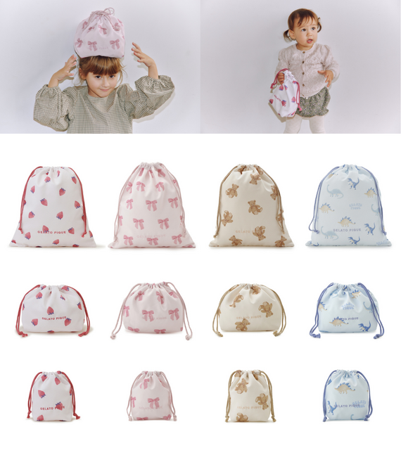 新しい春を迎える子どもたちにぴったりの「入園・入学シリーズ」。ストロベリー、リボン、ダイナソー、ベアの4つのモチーフが、入園・入学や新学年のスタートを華やかに彩ります。今年は生地に撥水加工し、より使いやすくアップデート。サイズが選べる巾着やレッスンバッグ、ランチクロスセット、成長に合わせて長く使えるKIDSリュックなど、毎日の通園・通学をやさしくサポートします。