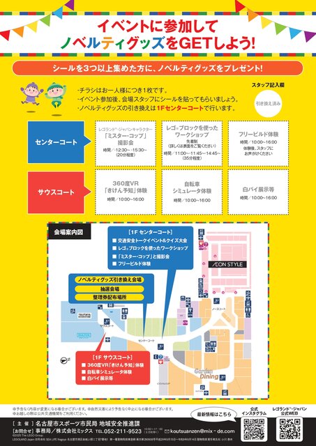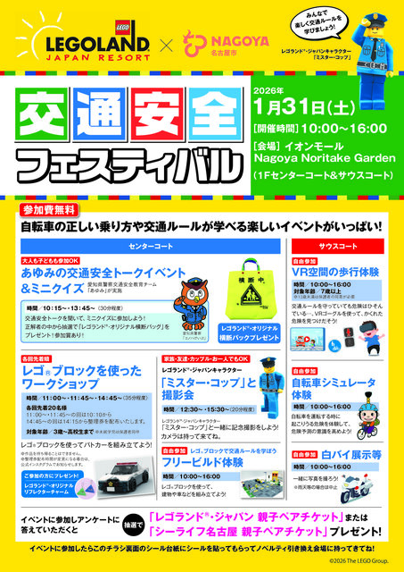 2026年1月31日(土)イオンモールNagoya Noritake Garden 1階センターコート・サウスコートにて「交通安全フェスティバル」を開催!名古屋市とレゴランドⓇ・ジャパンが連携し、子どもやドライバーである保護者が楽しく交通ルールを学ぶことができるイベントを開催します。