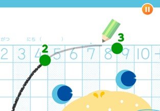 画面に表示された点と点を数字の順番通りに繋いでいく点つなぎゲームです。全ての点を繋げると、動物の絵が完成し、ノートの表紙に現れます。この遊びを通じ、数字の順序を学ぶことができ、どんな動物ができるかを想像しながら楽しむ体験ができます。ネコ、イルカ、ウサギ、パンダなど様々な動物が登場するステージは全部で24種類あり、クリアするごとに次のステージが開放されます。クリア条件に制限時間や評価がないため、未就学児も楽しく安心して遊べます。