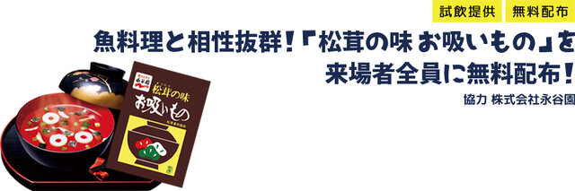 魚料理と相性抜群!永谷園の「松茸の味お吸いもの」をさかな文化祭の来場者全員に無料配布! ※調理画像はイメージです。実際の試飲内容と異なります。