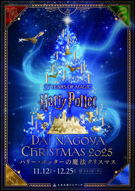「ハリー・ポッターの魔法クリスマス」をテーマに、毎年人気の天空のクリスマスツリーがハリー・ポッター仕様になり、ホグワーツ魔法魔術学校の4つの寮をイメージした巨大クリスマスリースも登場。その他にもLEDイルミネーションで金のスニッチを表現した、クィディッチ競技場などスカイガーデン全体で「ハリー・ポッター」の世界観をお楽しみ頂けます。また、1Fエントランスでは「ハリー・ポッター25周年」ロゴのモチーフであるパトローナスを表現した4mツリーがお出迎えします。