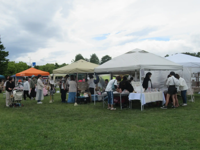 雑貨、アクセサリーなどの手作り作品が並ぶハンドメイド市です。